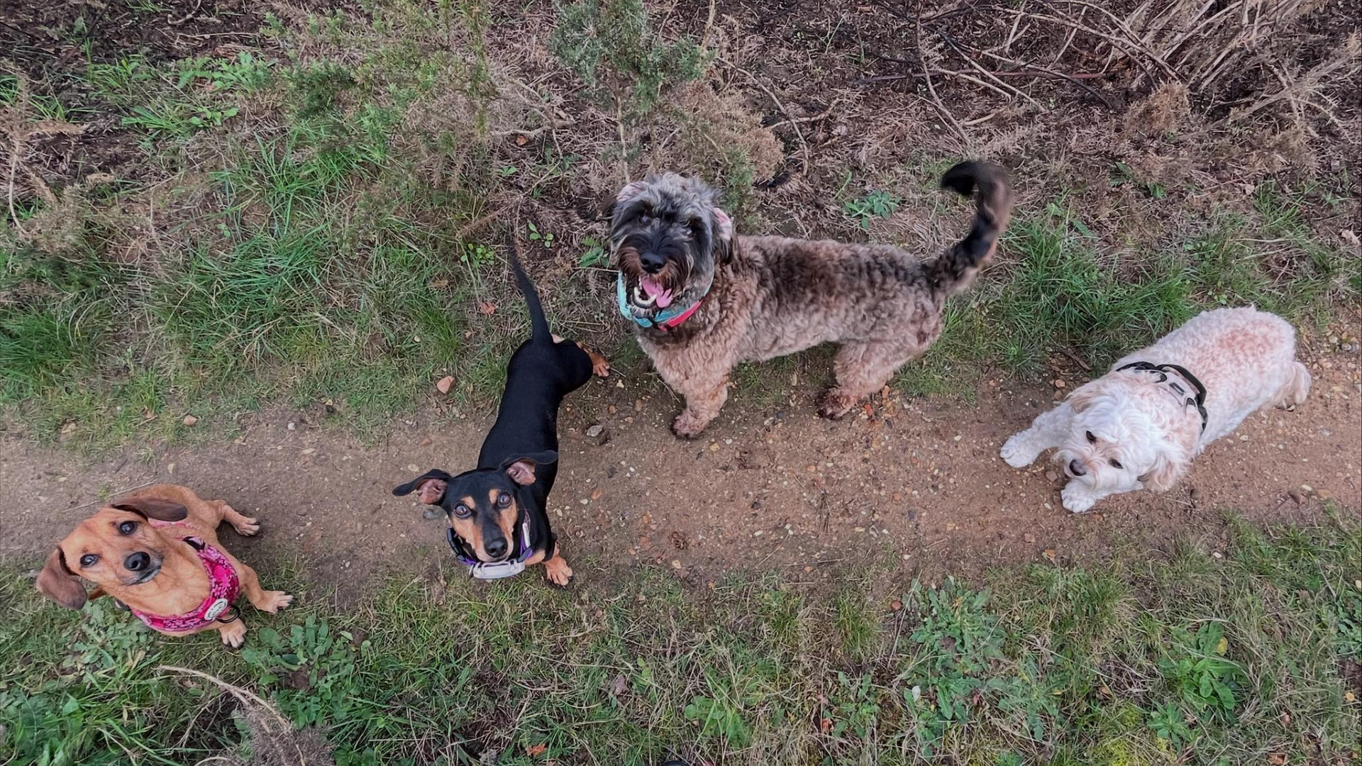To ensure a happy dynamic for both dogs and walker, we never walk more than four dogs at a time.